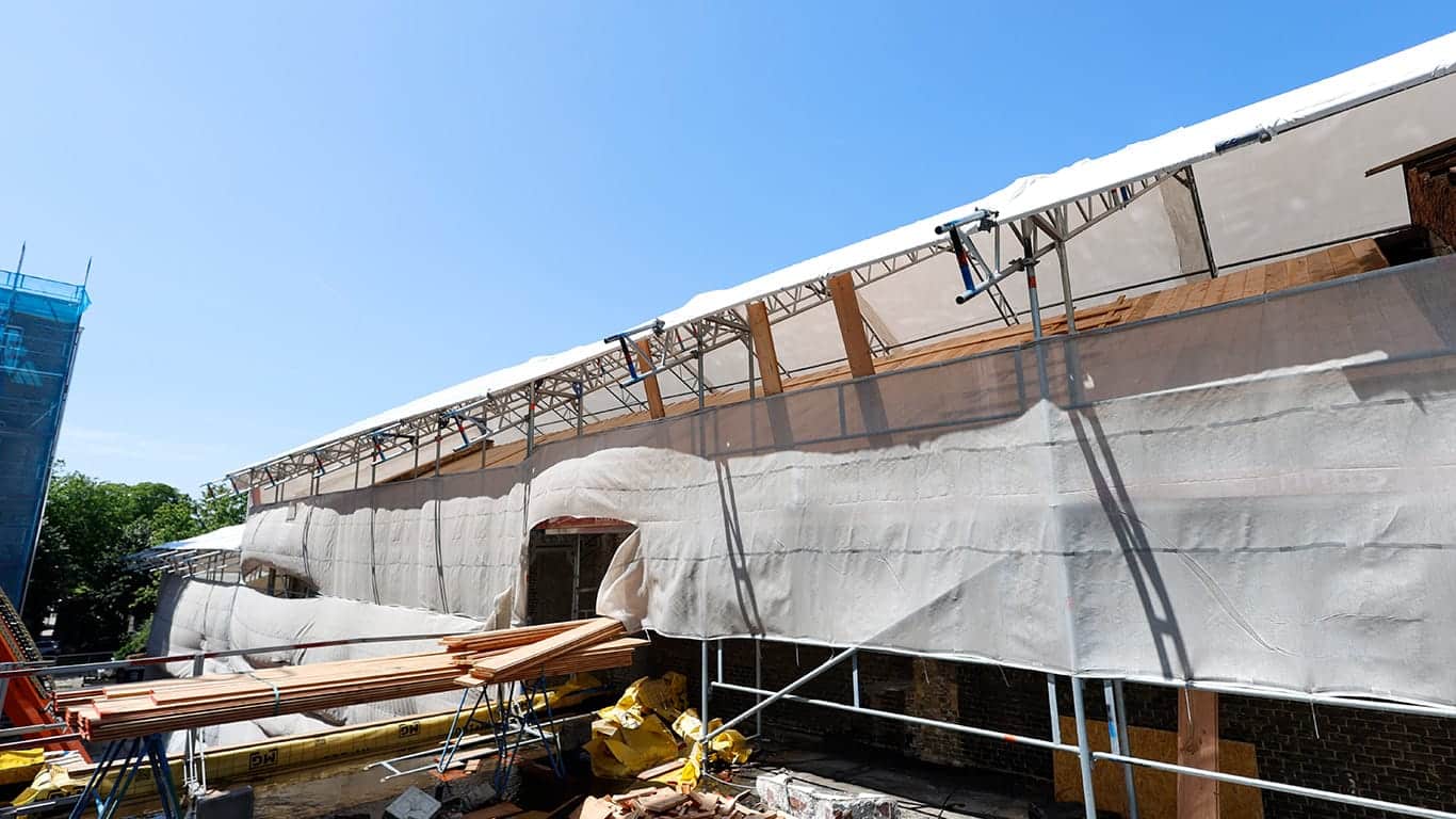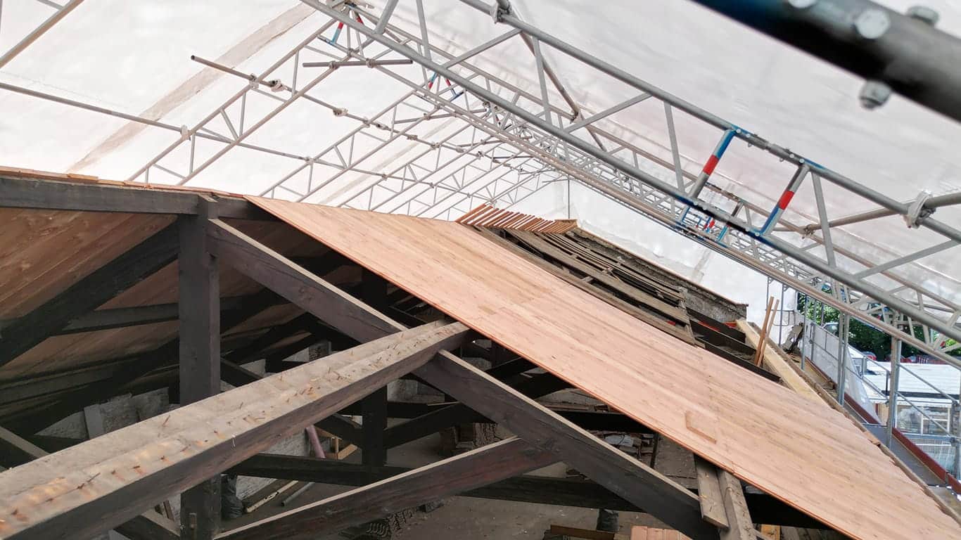 In opdracht van Glosec Bouwprojecten renoveerde Pannendekkersbedrijf Spijkers het dak van een monumentaal pand in Schiedam, dat wordt getransformeerd tot appartementencomplex. Werken aan zo’n historisch gebouw vraagt om precisie én flexibiliteit. Om veilig en droog te kunnen werken, werd het volledige dak afgedekt met zeilen en het pand rondom voorzien van steigers. Onze ervaren dakdekkers hergebruikten de originele dakpannen, zodat het karakter van het pand behouden bleef. De toevoeging van Velux dakvensters en zinken maatwerkdetails (1,1 mm) zorgen voor comfort en licht in de toekomstige woningen. Een technisch project, uitgevoerd met kennis van historische bouw én hedendaagse eisen.